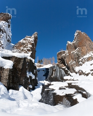 Дорога из Еревана в Джермук занимает около двух часов езды на машине. Но скучными они точно не покажутся. Красивая природа; древний город, уничтоженный вулканом; пещера — та самая, где не так давно археологи нашли самую древнюю в мире кожаную туфлю… А еще по дороге неплохо пообедать. Место для этого долго искать не придется. На многочисленных «ветерках», забегаловках, ресторанчиках и ресторанах с огромными, призывно установленными прямо во дворе мангалами красуются яркие вывески: «Армянская кухня», «Вайоц Дзор», «Карин так» («Под камнем»), «Ворскан» («Охотник») и ни больше ни меньше «Дзори такуи» («Царица ущелья»). Кормят здесь по-армянски основательно.Знаменитый джермукский водопад зимойЗнаменитый джермукский водопад зимойПо обе стороны дороги лежит нетронутый блестящий снег, по сравнению с которым лучшие кристаллы Сваровски — тусклые стекляшки. Дорога всячески намекает, что едете вы в место не совсем обычное — уже здесь начинают происходить невозможные вещи. На середине пути две вершины Арарата, Сис и Масис, сравниваются в росте, а времена года меняются совсем как в сказке о двенадцати месяцах. Из Еревана мы выехали зимой, потом внезапно снег растаял и запахло весной, а затем наступила осень. И только при въезде в Джермук зима вновь властно заявила о своих правах.